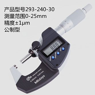 分辨率为0.001mm ,测量范围为0-25mm。带有一个调零键易于进行原点设置。棘轮锁定装置或摩擦套管可保持恒定测力。大型液晶显示屏易于对测量结果进行读数。